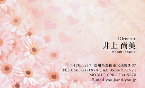 デザインの雰囲気が壊されなくていいですね☆そしてしっかり裏面に会社情報なんてこれまた贅沢な使い方ですね~ビビッドなピンクに白文字というのも小悪魔っぽいイメージでキュートですね♪