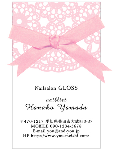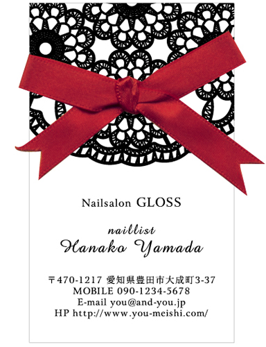 リボン付き名刺 NI-RI-063 カテゴリ > 可愛い リボン名刺 表 ※オンマウスで拡大表示いたします。 サイズ 91mm × 55mm このデザインで注文する このデザインでFAX注文 裏面デザインについて このデザインをお気に入りに追加 この商品に対するお問い合わせ 色違いデザイン NI-RI-057NI-RI-058NI-RI-059NI-RI-060 NI-RI-061NI-RI-062NI-RI-064NI-RI-065 NI-RI-066 簡単料金計算 用紙を選択 ハイトーン (最もスタンダードな白い用紙) マイルド (白味を少し抑えたオフホワイトの用紙) 光沢紙 ※両面印刷不可 ※ラインストーン不可 枚数を選択 2050100150200 金額をチェック 送料はこちら レビューコメント 2 件のレビュー・コメントがあります。 チャコ 様(閲覧者) 2023年01月18日 すっごいエレガントな感じ。お高そうにも見えるし、オシャレですね。華... 続きを読む チャコ 様(閲覧者) 2023年01月18日 すっごいエレガントな感じ。お高そうにも見えるし、オシャレですね。華やかに、大人っぽく、落ち着きのある女性の感じが素敵過ぎます。特別感あって、ちょっぴり背伸びしたいとき使いたいです! はなはな 様(閲覧者) 2022年04月17日 真紅のレースで華やかな印象があるけど、名前の部分が、白ベースの黒文字筆記体だから、落ち着いた雰囲気とのバランス感がすごくいい。真ん中にあるリボンが、エレガントさも出していて、大人な女性にピッタリ! 閉じる レビューをお書きください このデザインのレビュー(ご感想)をぜひご記入ください レビュー入力欄 レビューは不特定多数の方がご覧になりますので、 個人情報などを含まれないようにご注意ください。 投稿していただいた内容について、弊社で不適切と判断した場合には、 お断りなく非掲載とさせていただく場合がございます。 レビュー記入者の種別 閲覧者 購入者 レビュー記入者の名前(ニックネーム) 下の数字を入力: