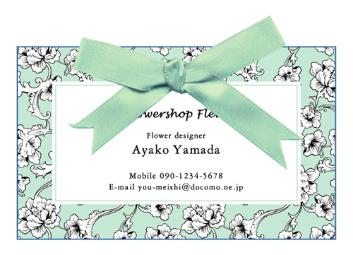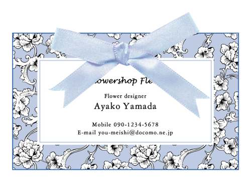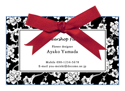 リボン付き名刺 NI-RI-160 カテゴリ > 可愛い リボン名刺 表 ※オンマウスで拡大表示いたします。 切抜きサイズ 縦 55 mm×横 91 mm このデザインで注文する このデザインでFAX注文 裏面デザインについて このデザインをお気に入りに追加 この商品に対するお問い合わせ 色違いデザイン NI-RI-157NI-RI-158NI-RI-159NI-RI-161 簡単料金計算 用紙を選択 ハイトーン (最もスタンダードな白い用紙) マイルド (白味を少し抑えたオフホワイトの用紙) 光沢紙 ※両面印刷不可 ※ラインストーン不可 枚数を選択 2050100150200 金額をチェック 送料はこちら レビューコメント 1 件のレビュー・コメントがあります。 セーラ 様(閲覧者) 2016年11月18日 花柄のシックな枠が、上品ですね。そこにネイビーのリボンがあって品格... 続きを読む セーラ 様(閲覧者) 2016年11月18日 花柄のシックな枠が、上品ですね。そこにネイビーのリボンがあって品格というものを感じる名刺になっていると思いました。育ちの良いお嬢様がイメージされる名刺ですね。イギリスの上流階級って感じがします。落ち着いた名刺なので、この名刺を持っていると自分自身も格上げされたような気持ちになり背筋が伸びそうです。文字も英字なので、雰囲気がありますね。 閉じる レビューをお書きください このデザインのレビュー(ご感想)をぜひご記入ください レビュー入力欄 レビューは不特定多数の方がご覧になりますので、 個人情報などを含まれないようにご注意ください。 投稿していただいた内容について、弊社で不適切と判断した場合には、 お断りなく非掲載とさせていただく場合がございます。 レビュー記入者の種別 閲覧者 購入者 レビュー記入者の名前(ニックネーム) 下の数字を入力: