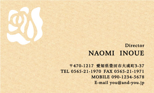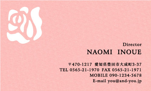 型抜き 名刺 5色 NI-SET-031 カテゴリ > 女性に人気 型抜き名刺(5色セット) 表 ※オンマウスで拡大表示いたします。 サイズ 91mm × 55mm このデザインで注文する このデザインでFAX注文 裏面デザインについて このデザインをお気に入りに追加 この商品に対するお問い合わせ 色違いデザイン NI-SET-141NI-SET-143NI-SET-032NI-SET-033 NI-SET-034NI-SET-145NI-SET-142NI-SET-800 NI-SET-801NI-SET-802NI-SET-803 簡単料金計算 用紙を選択 カラー用紙/紫 (凸凹した柄の入った用紙) 枚数を選択 100枚(20枚×5色)200枚(40枚×5色)300枚(60枚×5色)400枚(80枚×5色)500枚(100枚×5色) 金額をチェック 送料はこちら レビューコメント 1 件のレビュー・コメントがあります。 Aiko 様(閲覧者) 2015年06月25日 きれいなラベンダー色にバラの型抜きが高級感を感じられる一枚になって... 続きを読む Aiko 様(閲覧者) 2015年06月25日 きれいなラベンダー色にバラの型抜きが高級感を感じられる一枚になっていますね。型抜きの位置と対面した右下に書かれた文字が控えめなローマ字表記で、センスの良い美しい名刺ですね。5色あるなんてお得な気分ですね。選んで使用できるのが楽しみです。その日の気分やお客様に合わせて使用すると、喜んでもらえて次の仕事につながりそう。上品な型抜き名刺はおすすめですね。 閉じる レビューをお書きください このデザインのレビュー(ご感想)をぜひご記入ください レビュー入力欄 レビューは不特定多数の方がご覧になりますので、 個人情報などを含まれないようにご注意ください。 投稿していただいた内容について、弊社で不適切と判断した場合には、 お断りなく非掲載とさせていただく場合がございます。 レビュー記入者の種別 閲覧者 購入者 レビュー記入者の名前(ニックネーム) 下の数字を入力: