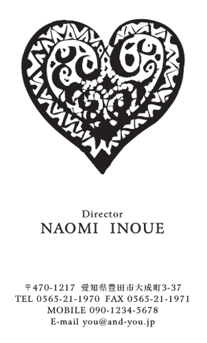 大きなハートが温もりを感じさせてくれる素敵な名刺ができ、早く使いたいと心がワクワクしています。