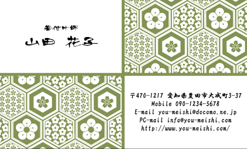 和風デザイン名刺 NI-WA-203 カテゴリ > 和風デザイン・和柄 名刺デザイン 表 ※オンマウスで拡大表示いたします。 サイズ 91mm × 55mm このデザインで注文する このデザインでFAX注文 裏面デザインについて このデザインをお気に入りに追加 この商品に対するお問い合わせ 色違いデザイン NI-WA-209NI-WA-206 簡単料金計算 用紙を選択 ハイトーン (最もスタンダードな白い用紙) マイルド (白味を少し抑えたオフホワイトの用紙) サニー (クリーム色の用紙) グレイ (緑がかった明るい灰色の用紙) 光沢紙 ※両面印刷不可 ※ラインストーン不可半透明(トレーシングペーパー) ※両面印刷不可 ※ラインストーン不可半透明(NTパイル) ※両面印刷不可 ※ラインストーン不可厚紙:オフホワイト 枚数を選択 203050100150200300400500 金額をチェック 送料はこちら レビューコメント 1 件のレビュー・コメントがあります。 サザエさん 様(閲覧者) 2017年06月02日 4つに仕切られたスペースにオブジェクトと文字情報が分けられていて、... 続きを読む サザエさん 様(閲覧者) 2017年06月02日 4つに仕切られたスペースにオブジェクトと文字情報が分けられていて、見やすいですね。オブジェクトは控えめな色の赤が使用されていて、やる気があり、行動的な印象をうけます。日本的な柄となっていて、名前の文字は、手書きのラフな墨文字にあわせていますね。この一マスに名前だけの情報が入っているので見やすいです。住所などの情報はセンター揃えになっていて簡潔になっていてわかり易いです。 閉じる レビューをお書きください このデザインのレビュー(ご感想)をぜひご記入ください レビュー入力欄 レビューは不特定多数の方がご覧になりますので、 個人情報などを含まれないようにご注意ください。 投稿していただいた内容について、弊社で不適切と判断した場合には、 お断りなく非掲載とさせていただく場合がございます。 レビュー記入者の種別 閲覧者 購入者 レビュー記入者の名前(ニックネーム) 下の数字を入力: 関連デザイン penki-ay001 penki-ay002 penki-ay003 penki-ay004 penki-ay005 penki-ay006 snack-hr001 sobaya-ak001 aice012 aice015 aico031 aisq031