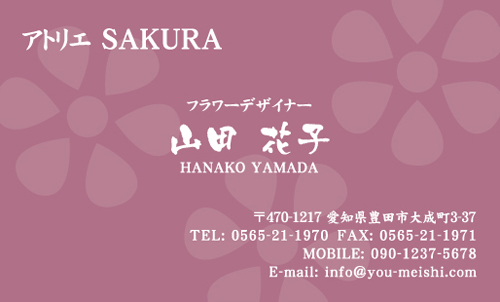 和風デザイン・和柄名刺 NI-WA-255 カテゴリ > 和風デザイン・和柄 名刺デザイン 表 ※オンマウスで拡大表示いたします。 サイズ 91mm × 55mm このデザインで注文する このデザインでFAX注文 裏面デザインについて このデザインをお気に入りに追加 この商品に対するお問い合わせ 色違いデザイン NI-WA-254 簡単料金計算 用紙を選択 光沢紙 ※両面印刷不可 ※ラインストーン不可 枚数を選択 203050100150200300400500 金額をチェック 送料はこちら レビューコメント レビュー・コメントはまだありません。 閉じる レビューをお書きください このデザインのレビュー(ご感想)をぜひご記入ください レビュー入力欄 レビューは不特定多数の方がご覧になりますので、 個人情報などを含まれないようにご注意ください。 投稿していただいた内容について、弊社で不適切と判断した場合には、 お断りなく非掲載とさせていただく場合がございます。 レビュー記入者の種別 閲覧者 購入者 レビュー記入者の名前(ニックネーム) 下の数字を入力: 関連デザイン penki-ay001 penki-ay002 penki-ay003 penki-ay004 penki-ay005 penki-ay006 niha250 niha251 niha252 niki001 niki025 niki026