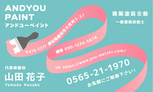 ペンキ屋・塗装屋 名刺デザイン penki-AI-011 カテゴリ > ペンキ屋・塗装屋 名刺デザイン 表 イメージ ※オンマウスで拡大表示いたします。 サイズ 91mm × 55mm このデザインで注文する このデザインでFAX注文 裏面デザインについて このデザインをお気に入りに追加 この商品に対するお問い合わせ 色違いデザイン penki-AI-008penki-AI-009penki-AI-011 簡単料金計算 用紙を選択 ハイトーン (最もスタンダードな白い用紙) マイルド (白味を少し抑えたオフホワイトの用紙) サニー (クリーム色の用紙) 光沢紙 ※両面印刷不可 ※ラインストーン不可半透明(NTパイル) ※両面印刷不可 ※ラインストーン不可厚紙:オフホワイト 枚数を選択 203050100150200300400500 金額をチェック 送料はこちら レビューコメント レビュー・コメントはまだありません。 閉じる レビューをお書きください このデザインのレビュー(ご感想)をぜひご記入ください レビュー入力欄 レビューは不特定多数の方がご覧になりますので、 個人情報などを含まれないようにご注意ください。 投稿していただいた内容について、弊社で不適切と判断した場合には、 お断りなく非掲載とさせていただく場合がございます。 レビュー記入者の種別 閲覧者 購入者 レビュー記入者の名前(ニックネーム) 下の数字を入力: