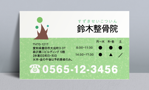 カイロプラクティック・整体院・接骨院・整骨院・鍼灸院・マッサージ 名刺デザイン seikotuin-HS-008 カテゴリ > カイロプラクティック・整体院・接骨院・整骨院・鍼灸院・マッサージ 名刺デザイン ご自身のお写真を入れたり、取り扱っている施術などを入れたりできます 表 裏 表イメージ 裏イメージ ※オンマウスで拡大表示いたします。 サイズ 91mm × 55mm このデザインで注文する このデザインでFAX注文 このデザインをお気に入りに追加 この商品に対するお問い合わせ 色違いデザイン seikotuin-HS-007 簡単料金計算 用紙を選択 ハイトーン (最もスタンダードな白い用紙) 枚数を選択 203050100150200300400500 金額をチェック 送料はこちら レビューコメント レビュー・コメントはまだありません。 閉じる レビューをお書きください このデザインのレビュー(ご感想)をぜひご記入ください レビュー入力欄 レビューは不特定多数の方がご覧になりますので、 個人情報などを含まれないようにご注意ください。 投稿していただいた内容について、弊社で不適切と判断した場合には、 お断りなく非掲載とさせていただく場合がございます。 レビュー記入者の種別 閲覧者 購入者 レビュー記入者の名前(ニックネーム) 下の数字を入力: