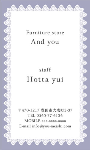 かわいい名刺 YH-CU-072 カテゴリ > かわいいデザイン名刺 表 ※オンマウスで拡大表示いたします。 サイズ 91mm × 55mm このデザインで注文する このデザインでFAX注文 裏面デザインについて このデザインをお気に入りに追加 この商品に対するお問い合わせ 色違いデザイン YH-CU-070YH-CU-071 簡単料金計算 用紙を選択 ハイトーン (最もスタンダードな白い用紙) マイルド (白味を少し抑えたオフホワイトの用紙) サニー (クリーム色の用紙) 光沢紙 ※両面印刷不可 ※ラインストーン不可半透明(トレーシングペーパー) ※両面印刷不可 ※ラインストーン不可半透明(NTパイル) ※両面印刷不可 ※ラインストーン不可厚紙:オフホワイト 枚数を選択 203050100150200300400500 金額をチェック 送料はこちら レビューコメント 2 件のレビュー・コメントがあります。 晴夏 様(閲覧者) 2018年06月19日 多くの方に親しみを持ってもらえそうな名刺ですね。名刺の中に使われて... 続きを読む 晴夏 様(閲覧者) 2018年06月19日 多くの方に親しみを持ってもらえそうな名刺ですね。名刺の中に使われている色がとても優しくて、心がほのぼのとした温かい気持ちになります。平和を連想させるような穏やかな色で、名刺を渡した方とも友好的な関係を築くことができそうですね。文字の書き方もお洒落だと思います。会社名と名前の間に空白があるのが、余裕が感じられて良いですね。 尾畠 様(閲覧者) 2018年05月27日 名刺の中に黄緑色が使われていて、落ち着いている感じがしますね。新緑のようなみずみずしさを感じます。オーガニックな雰囲気もあって良いですね。名前はローマ字で書かれているのですね。グローバルチックな感じでとても素敵だと思います。相手の方にもきちんと自身の名前が伝わることでしょう。電話番号がアラビア数字で書かれているのも、読みやすくて良いですね。 閉じる レビューをお書きください このデザインのレビュー(ご感想)をぜひご記入ください レビュー入力欄 レビューは不特定多数の方がご覧になりますので、 個人情報などを含まれないようにご注意ください。 投稿していただいた内容について、弊社で不適切と判断した場合には、 お断りなく非掲載とさせていただく場合がございます。 レビュー記入者の種別 閲覧者 購入者 レビュー記入者の名前(ニックネーム) 下の数字を入力: 関連デザイン penki-ay001 penki-ay002 penki-ay003 penki-ay004 penki-ay005 penki-ay006 nice077 nice080 nice085 nice086 ayl018 ayl026