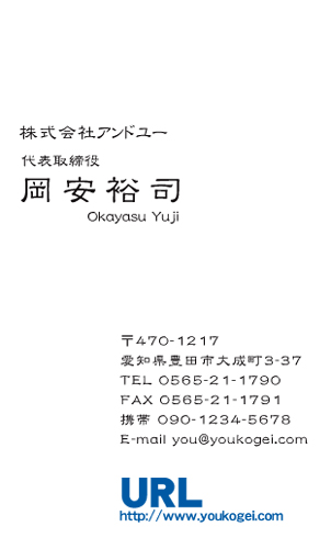 筆文字名刺 YH-SH-024 カテゴリ > 筆文字・毛筆・和 名刺 表 ※オンマウスで拡大表示いたします。 サイズ 91mm × 55mm このデザインで注文する このデザインでFAX注文 裏面デザインについて このデザインをお気に入りに追加 この商品に対するお問い合わせ 色違いデザイン YH-SH-022YH-SH-023 簡単料金計算 用紙を選択 ハイトーン (最もスタンダードな白い用紙) マイルド (白味を少し抑えたオフホワイトの用紙) サニー (クリーム色の用紙) グレイ (緑がかった明るい灰色の用紙) 光沢紙 ※両面印刷不可 ※ラインストーン不可和紙(両面新大礼紙) (両面にレーヨン繊維が漉き込まれています) 半透明(トレーシングペーパー) ※両面印刷不可 ※ラインストーン不可半透明(NTパイル) ※両面印刷不可 ※ラインストーン不可厚紙:オフホワイト 枚数を選択 203050100150200300400500 金額をチェック 送料はこちら レビューコメント レビュー・コメントはまだありません。 閉じる レビューをお書きください このデザインのレビュー(ご感想)をぜひご記入ください レビュー入力欄 レビューは不特定多数の方がご覧になりますので、 個人情報などを含まれないようにご注意ください。 投稿していただいた内容について、弊社で不適切と判断した場合には、 お断りなく非掲載とさせていただく場合がございます。 レビュー記入者の種別 閲覧者 購入者 レビュー記入者の名前(ニックネーム) 下の数字を入力: 関連デザイン penki-ay001 penki-ay002 penki-ay003 penki-ay004 penki-ay005 penki-ay006 akco023 akco029 nis019 nis020 nis021 nis022
