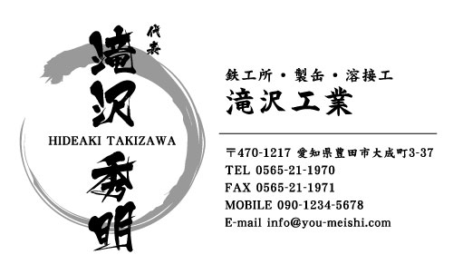 鉄工所・製缶・溶接工 名刺デザイン yousetu-NI-013 カテゴリ > 鉄工所・製缶・溶接工 名刺デザイン 表 イメージ ※オンマウスで拡大表示いたします。 サイズ 91mm × 55mm このデザインで注文する このデザインでFAX注文 裏面デザインについて このデザインをお気に入りに追加 この商品に対するお問い合わせ 色違いデザイン yousetu-NI-014 簡単料金計算 用紙を選択 ハイトーン (最もスタンダードな白い用紙) マイルド (白味を少し抑えたオフホワイトの用紙) サニー (クリーム色の用紙) 光沢紙 ※両面印刷不可 ※ラインストーン不可和紙(両面新大礼紙) (両面にレーヨン繊維が漉き込まれています) 半透明(トレーシングペーパー) ※両面印刷不可 ※ラインストーン不可半透明(NTパイル) ※両面印刷不可 ※ラインストーン不可厚紙:オフホワイト 枚数を選択 203050100150200300400500 金額をチェック 送料はこちら レビューコメント レビュー・コメントはまだありません。 閉じる レビューをお書きください このデザインのレビュー(ご感想)をぜひご記入ください レビュー入力欄 レビューは不特定多数の方がご覧になりますので、 個人情報などを含まれないようにご注意ください。 投稿していただいた内容について、弊社で不適切と判断した場合には、 お断りなく非掲載とさせていただく場合がございます。 レビュー記入者の種別 閲覧者 購入者 レビュー記入者の名前(ニックネーム) 下の数字を入力: