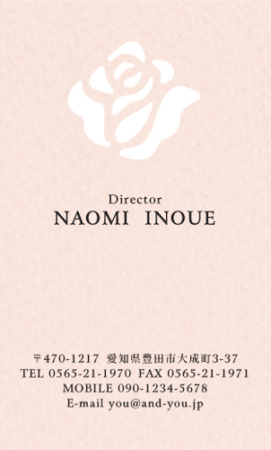 もう、デザインそのものがとても可愛らしいです! 正方形の名刺もあるんですね。 実際に見た事がないので初めて知りました。 絵が、とっても可愛くて花畑にいるようなイメージがありますし、明るいピンクの色が凄く合っていると思いました。 文字も工夫されていて、可愛さアップしてます。 なんだか、初めて知った事で凄く素敵な名刺が見れた感じです。 | |