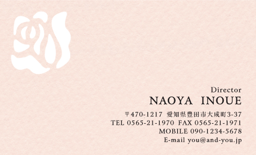 素敵な名刺ありがとうございました! ! お花の教室なので 優しい 華やぎのあるものを探してました。 バラの香りも入れて頂き、これから名刺を差し上げる時の皆さんの反応が楽しみです。 文字も黒からグレーにして頂いたので 柔らかさも演出できました。 しいて言えば、ピンクのカラー、画像では分かりずらいので もう少し薄いピンクかなー、と思ってました。 ちょっと色は濃かったと思います。 | |