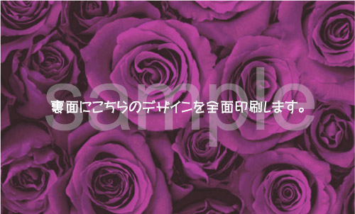 名刺の裏側は白紙や文字だけが多いのですが、こんな風に一面にバラが描かれていたら、とても素敵ですね。 渡した相手にも印象が残りやすいのではないでしょうか? パーティーなどの特別な場所での顔合わせに使ってみたい名刺ですね。 華やかでとても良い雰囲気だと思います。 表がシンプルなものほど、こういった華やぎのあるものを裏側に使用してみたいですね。 | |