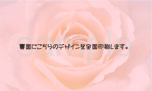 色がすごく、きれいですね! 表面じゃなくて、裏面にこんな美しい写真を使うなんて、信じられないような贅沢だと思います。 ほのかに、薔薇の香りが漂ってきそう…。 このデリケートな雰囲気を壊さないためには、表側はできるだけシンプルなデザインがいいですよね。 私なら、名刺交換するときに、さりげなく裏面をチラ見せしちゃうかも…。 | |