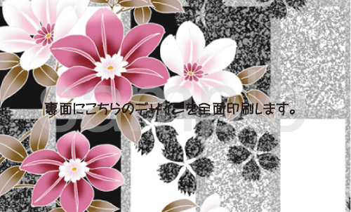左半分と右半分のイメージが似ているようですが、与えるイメージが異なっているように感じさせます。 左半分は明るくて華々しいイメージを与えてくれますが、右半分はシックで清楚なイメージを与えてくれます。 そして前面を改めて見てみると、清楚な感じと明るさを兼ね備えたイメージを与えてくれています。 もらった名刺の裏側こんな絵が書かれていたら、爽やかな印象を受けるでしょうね。 | |
