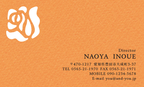 夏のひまわりほど輝いている花はそうないと思いますが、名刺になって配られたらあったかい輝いた夏をイメージする人も多いと思います。 体感気温が1~2度上がったりして(笑)男性でも女性でも年代も幅広い人が使えると思いますし元気なイメージをもたれると思いますね。 元気な人・明るい人ってそれだけで周りを元気に明るくしてくれますし、名刺でそのように思ってもらえたらそれにこしたことないですね。 (笑) | |