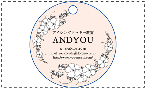 名刺に、紐を通す【穴】が付いておりますので、お好きな紐を通して頂ければ完成!
