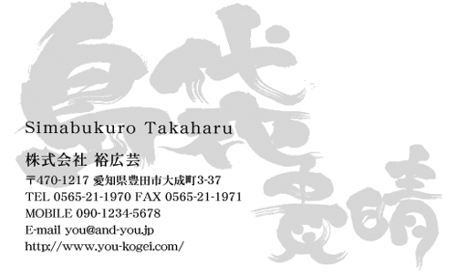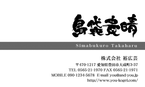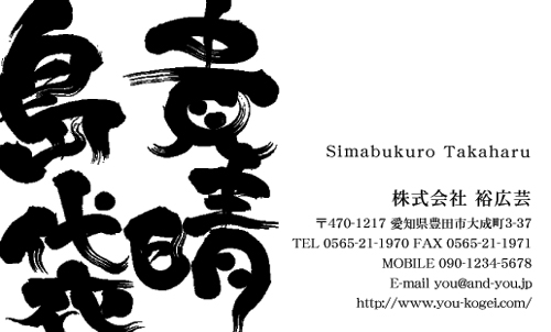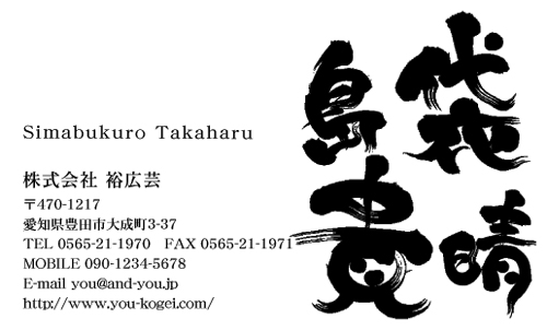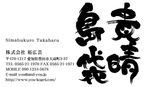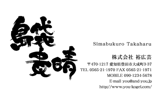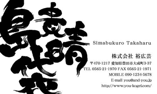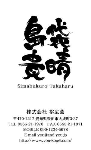 筆文字名刺/筆文字作成例「書道家:工房 自遊家 影目喬」