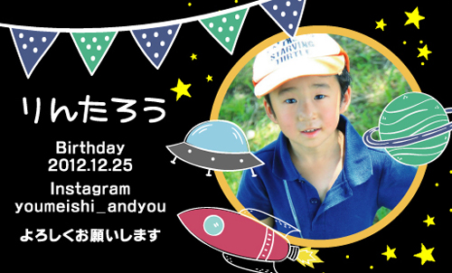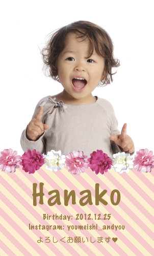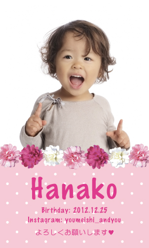 自分の子供をモデルにしたい!こどもも一緒に自己紹介がしたい!と言うパパ ママにおススメな名刺です。