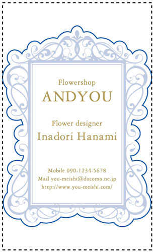 ※通常の名刺サイズ91mm×55mmを点線で表しておりますので、切りぬき後のサイズの目安としてご覧ください。