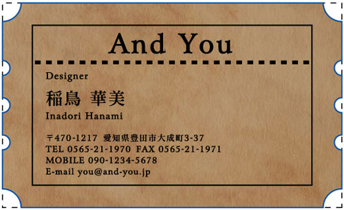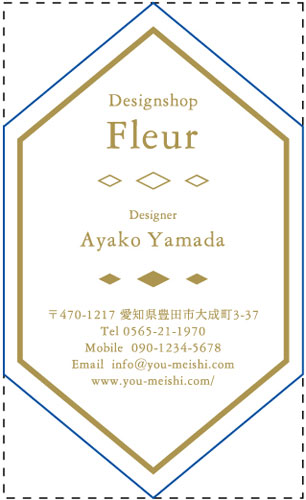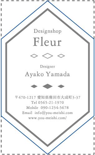※通常の名刺サイズ91mm×55mmを点線で表しておりますので、切りぬき後のサイズの目安としてご覧ください。
