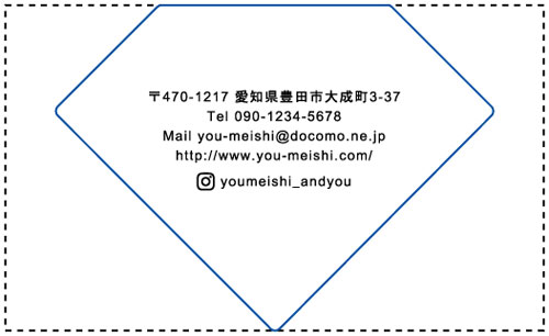 ※通常の名刺サイズ91mm×55mmを点線で表しておりますので、切りぬき後のサイズの目安としてご覧ください。