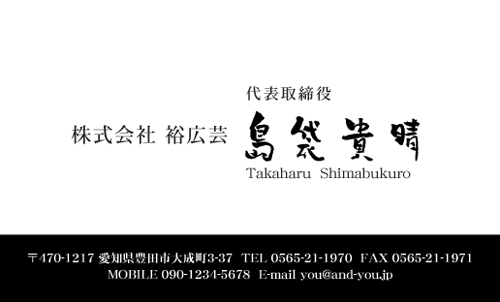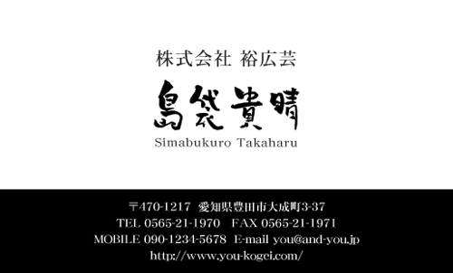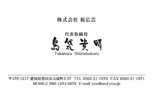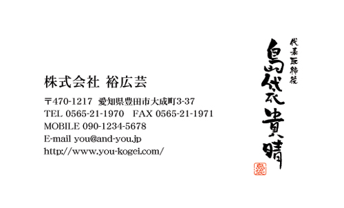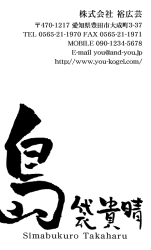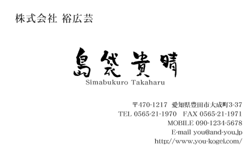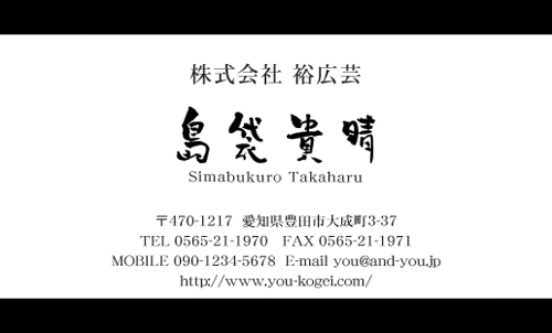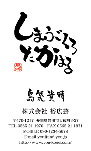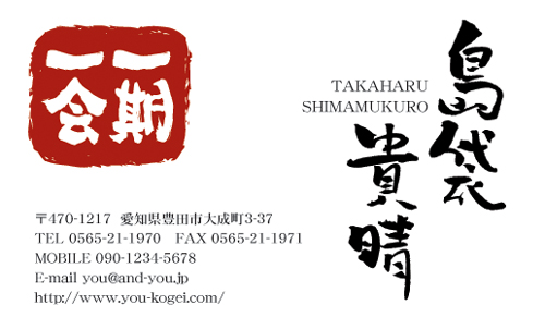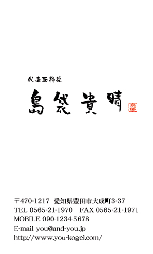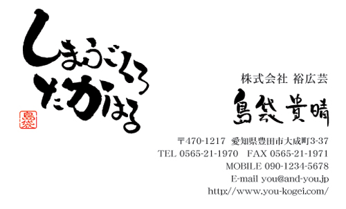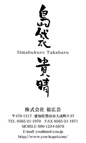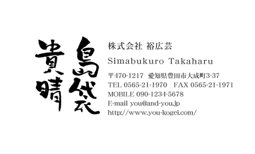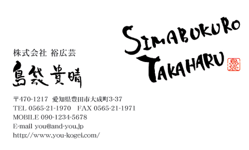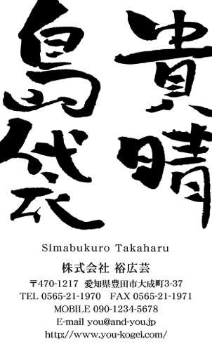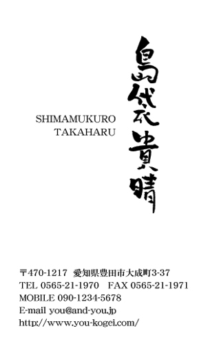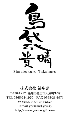 筆文字名刺/筆文字作成例「書道家:ことばの工房 浅井浩介」