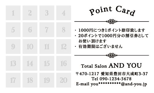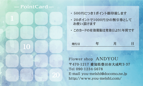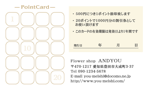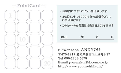 20枚から注文できるショップ様用ポイントカードです。