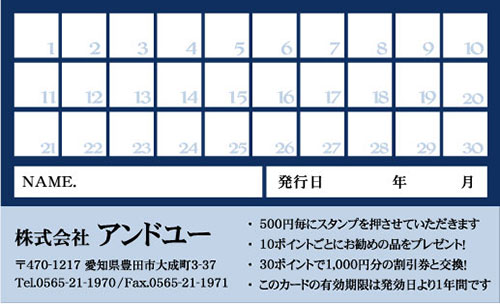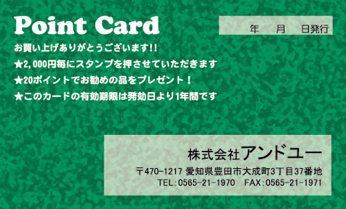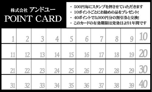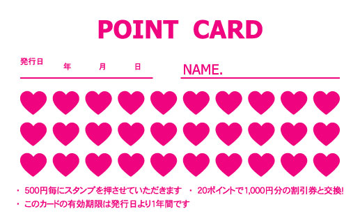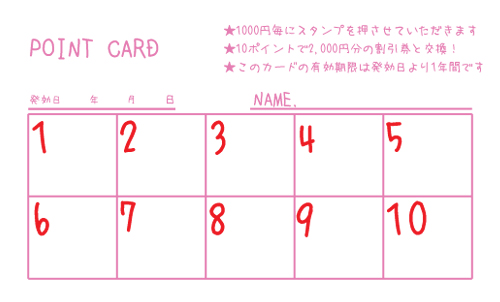20枚から注文できるショップ様用ポイントカードです。