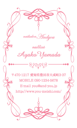 セレブ名刺 AK-CE-098 カテゴリ > 上品でセンスのいいセレブデザイン名刺 表 ※オンマウスで拡大表示いたします。 サイズ 91mm × 55mm このデザインで注文する このデザインでFAX注文 裏面デザインについて このデザインをお気に入りに追加 この商品に対するお問い合わせ 色違いデザイン AK-CE-097AK-CE-099 簡単料金計算 用紙を選択 ハイトーン (最もスタンダードな白い用紙) マイルド (白味を少し抑えたオフホワイトの用紙) サニー (クリーム色の用紙) グレイ (緑がかった明るい灰色の用紙) 光沢紙 ※両面印刷不可 ※ラインストーン不可半透明(トレーシングペーパー) ※両面印刷不可 ※ラインストーン不可半透明(NTパイル) ※両面印刷不可 ※ラインストーン不可厚紙:オフホワイト 枚数を選択 203050100150200300400500 金額をチェック 送料はこちら レビューコメント 1 件のレビュー・コメントがあります。 サナ 様(閲覧者) 2021年04月20日 レースみたいな模様に一目惚れしました!派手なピンク色じゃなくて、く... 続きを読む サナ 様(閲覧者) 2021年04月20日 レースみたいな模様に一目惚れしました!派手なピンク色じゃなくて、くすみピンクな感じが上品でイイですね。大人っぽさの中にかわいさのあるデザインだと思います。 閉じる レビューをお書きください このデザインのレビュー(ご感想)をぜひご記入ください レビュー入力欄 レビューは不特定多数の方がご覧になりますので、 個人情報などを含まれないようにご注意ください。 投稿していただいた内容について、弊社で不適切と判断した場合には、 お断りなく非掲載とさせていただく場合がございます。 レビュー記入者の種別 閲覧者 購入者 レビュー記入者の名前(ニックネーム) 下の数字を入力: 関連デザイン penki-ay001 penki-ay002 penki-ay003 penki-ay004 penki-ay005 penki-ay006 akcu047 akpc002 aycu032 aycu050 nicu167 nicu170
