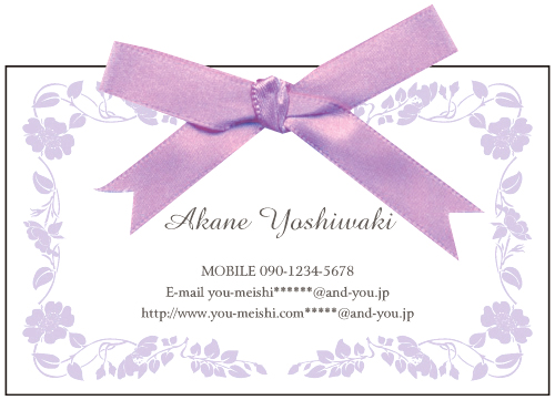 リボン付き名刺 AK-RI-004 カテゴリ > 可愛い リボン名刺 表 ※オンマウスで拡大表示いたします。 サイズ 91mm × 55mm このデザインで注文する このデザインでFAX注文 裏面デザインについて このデザインをお気に入りに追加 この商品に対するお問い合わせ 色違いデザイン AK-RI-005AK-RI-006 簡単料金計算 用紙を選択 ハイトーン (最もスタンダードな白い用紙) マイルド (白味を少し抑えたオフホワイトの用紙) サニー (クリーム色の用紙) 光沢紙 ※両面印刷不可 ※ラインストーン不可半透明(NTパイル) ※両面印刷不可 ※ラインストーン不可 枚数を選択 2050100150200 金額をチェック 送料はこちら レビューコメント 2 件のレビュー・コメントがあります。 ちーかわ 様(閲覧者) 2022年12月15日 あざかわすぎるでしょ!The女の子♡って感じ♡キューティー女子!かわい... 続きを読む ちーかわ 様(閲覧者) 2022年12月15日 あざかわすぎるでしょ!The女の子♡って感じ♡キューティー女子!かわいいは正義!!色味といいリボンといい可愛いの定番が詰まってる!柄の感じとかお上品で最高っ! しんでぃ 様(閲覧者) 2015年11月27日 すごく可愛らしい雰囲気をまとった名刺ですね。ピンクのリアルなリボンがすごく可愛いです。リボンの結び目というのはよく見るととても美しい造形をしているのですね。ぐるりと縁取りのように配置された枠飾りのお花も素敵です。ちょっぴりレトロな感じのお花のシルエットで、上品さがにじみ出ていますね。繊細なお花のラインと流麗なアルファベットのお名前がよく似合っているなと思いました。 閉じる レビューをお書きください このデザインのレビュー(ご感想)をぜひご記入ください レビュー入力欄 レビューは不特定多数の方がご覧になりますので、 個人情報などを含まれないようにご注意ください。 投稿していただいた内容について、弊社で不適切と判断した場合には、 お断りなく非掲載とさせていただく場合がございます。 レビュー記入者の種別 閲覧者 購入者 レビュー記入者の名前(ニックネーム) 下の数字を入力: