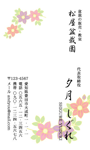 盆栽園・盆栽士・盆栽職人・盆栽屋 名刺デザイン bonsai-HS-010 カテゴリ > 盆栽園・盆栽士・盆栽職人・盆栽屋 名刺デザイン 表 イメージ ※オンマウスで拡大表示いたします。 サイズ 91mm × 55mm このデザインで注文する このデザインでFAX注文 裏面デザインについて このデザインをお気に入りに追加 この商品に対するお問い合わせ 色違いデザイン bonsai-HS-013bonsai-HS-012bonsai-HS-011 簡単料金計算 用紙を選択 ハイトーン (最もスタンダードな白い用紙) マイルド (白味を少し抑えたオフホワイトの用紙) サニー (クリーム色の用紙) 光沢紙 ※両面印刷不可 ※ラインストーン不可和紙(両面新大礼紙) (両面にレーヨン繊維が漉き込まれています) 半透明(トレーシングペーパー) ※両面印刷不可 ※ラインストーン不可半透明(NTパイル) ※両面印刷不可 ※ラインストーン不可 枚数を選択 203050100150200300400500 金額をチェック 送料はこちら レビューコメント レビュー・コメントはまだありません。 閉じる レビューをお書きください このデザインのレビュー(ご感想)をぜひご記入ください レビュー入力欄 レビューは不特定多数の方がご覧になりますので、 個人情報などを含まれないようにご注意ください。 投稿していただいた内容について、弊社で不適切と判断した場合には、 お断りなく非掲載とさせていただく場合がございます。 レビュー記入者の種別 閲覧者 購入者 レビュー記入者の名前(ニックネーム) 下の数字を入力: