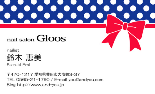 職業別名刺:ネイリスト nailist-AY-CU-015 カテゴリ > ネイルサロン・ネイリスト 名刺デザイン 表 ※オンマウスで拡大表示いたします。 サイズ 91mm × 55mm このデザインで注文する このデザインでFAX注文 裏面デザインについて このデザインをお気に入りに追加 この商品に対するお問い合わせ 色違いデザイン nailist-AY-CU-014 簡単料金計算 用紙を選択 ハイトーン (最もスタンダードな白い用紙) マイルド (白味を少し抑えたオフホワイトの用紙) サニー (クリーム色の用紙) グレイ (緑がかった明るい灰色の用紙) 光沢紙 ※両面印刷不可 ※ラインストーン不可半透明(トレーシングペーパー) ※両面印刷不可 ※ラインストーン不可半透明(NTパイル) ※両面印刷不可 ※ラインストーン不可 枚数を選択 203050100150200300400500 金額をチェック 送料はこちら レビューコメント 3 件のレビュー・コメントがあります。 マナミ 様(閲覧者) 2018年06月29日 ドット×黒リボンのイラストがとても可愛いなと思いました。ザ・女子!... 続きを読む マナミ 様(閲覧者) 2018年06月29日 ドット×黒リボンのイラストがとても可愛いなと思いました。ザ・女子!って感じのデザインで、こんな可愛い名刺を持てるのも女の特権ですよね☆ハンドメイドアクサリーを販売しているので、その商品に添えるサンキューカードも、このデザインで作成したいと考えてます。記載する内容が決まり次第、注文させていただきますので、その際はよろしくお願いします。 AI 様(閲覧者) 2014年04月08日 めっちゃ『女の子!』って感じの名刺でカワイイ!!私も欲しいぐらい!上の部分だけピンクに白のドットで黒のリボンがしまった感じがあってステキ!!シンプルっぽい名刺なのにピンクのドットを入れることでカワイイ名刺に「変身」した感じがしますね!文字は黒で統一してバランスも良く、可愛いのにカッコ良く見えますね!! 亀田 隆雄 様(閲覧者) 2013年04月11日 この名刺、少し不思議な感じがするな。どうしてかと言うと、まず最初に目が行くのが、黒のリボンの所だと思うんだ。普通黒のリボンと言えば、ちょっと地味目にしたい時に着けていくとの思いがあるんだけど、それがこれだとアクセント感覚で、使われているのだからさ。それと対照的なのが、そこより上の、ピンクの背景に白の水玉模様が、明るく女性らしさを感じさせるのだからなんだ。 閉じる レビューをお書きください このデザインのレビュー(ご感想)をぜひご記入ください レビュー入力欄 レビューは不特定多数の方がご覧になりますので、 個人情報などを含まれないようにご注意ください。 投稿していただいた内容について、弊社で不適切と判断した場合には、 お断りなく非掲載とさせていただく場合がございます。 レビュー記入者の種別 閲覧者 購入者 レビュー記入者の名前(ニックネーム) 下の数字を入力: