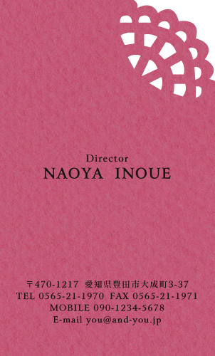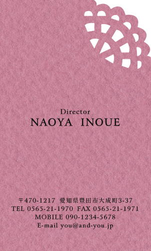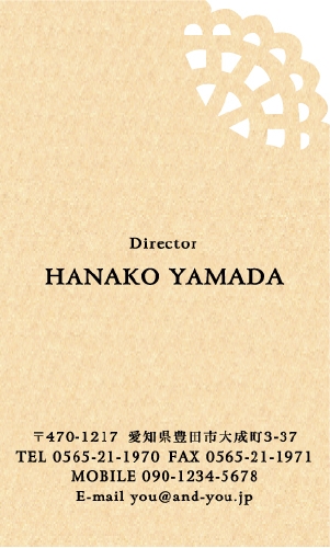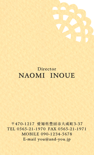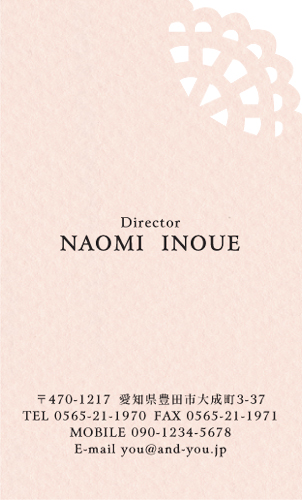 型抜き名刺 2色セット NI-HALF-117 カテゴリ > 女性に人気 型抜き名刺(2色セット) 表 ※オンマウスで拡大表示いたします。 サイズ 91mm × 55mm このデザインで注文する このデザインでFAX注文 裏面デザインについて このデザインをお気に入りに追加 この商品に対するお問い合わせ 色違いデザイン NI-HALF-061NI-HALF-119NI-HALF-062NI-HALF-063 NI-HALF-064NI-HALF-121NI-HALF-118NI-HALF-714 NI-HALF-783NI-HALF-784NI-HALF-785 簡単料金計算 用紙を選択 カラー用紙/空 (凸凹した柄の入った用紙) 枚数を選択 100枚(50枚×2色)200枚(100枚×2色)300枚(150枚×2色)400枚(200枚×2色)500枚(250枚×2色) 金額をチェック 送料はこちら レビューコメント 1 件のレビュー・コメントがあります。 あん 様(閲覧者) 2024年03月11日 型抜き名刺かわいいです。デザインもとってもすっきりとまとまっていて... 続きを読む あん 様(閲覧者) 2024年03月11日 型抜き名刺かわいいです。デザインもとってもすっきりとまとまっていて、名前がローマ字なのがお洒落です。2色セットになっていてとても有難いですね。デコボコした用紙がかわいいです。 閉じる レビューをお書きください このデザインのレビュー(ご感想)をぜひご記入ください レビュー入力欄 レビューは不特定多数の方がご覧になりますので、 個人情報などを含まれないようにご注意ください。 投稿していただいた内容について、弊社で不適切と判断した場合には、 お断りなく非掲載とさせていただく場合がございます。 レビュー記入者の種別 閲覧者 購入者 レビュー記入者の名前(ニックネーム) 下の数字を入力: