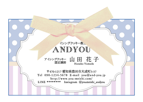 リボン付き名刺 NI-RI-172 カテゴリ > 可愛い リボン名刺 表 ※オンマウスで拡大表示いたします。 サイズ 91mm × 55mm このデザインで注文する このデザインでFAX注文 裏面デザインについて このデザインをお気に入りに追加 この商品に対するお問い合わせ 色違いデザイン NI-RI-168NI-RI-169NI-RI-170NI-RI-171 NI-RI-173 簡単料金計算 用紙を選択 ハイトーン (最もスタンダードな白い用紙) マイルド (白味を少し抑えたオフホワイトの用紙) 光沢紙 ※両面印刷不可 ※ラインストーン不可 枚数を選択 2050100150200 金額をチェック 送料はこちら レビューコメント 2 件のレビュー・コメントがあります。 ピーチ姫 様(閲覧者) 2020年02月14日 ドットとストライプの組み合わせって柄物同士で難しい組み合わせだと思... 続きを読む ピーチ姫 様(閲覧者) 2020年02月14日 ドットとストライプの組み合わせって柄物同士で難しい組み合わせだと思いますが、見事なオシャレっぷりでまとまってますね!淡いカラーが可愛いらしく、ワンポイントのリボンがより一層女性らしさを強調させていて素敵な名刺です。 千葉 様(閲覧者) 2017年08月07日 大きな紫色のリボンが特徴的な、ポップでスタイリッシュな印象を相手に与える素敵な名刺ですね。上部の水玉模様(水色と白色の組み合わせ)と下部の縦縞模様(白とピンクの組み合わせ)が、印象を重たせすぎず、紫色のリボンとの調和が取れていて良いですね。文字の書き方もお洒落だなぁ。メッセージカード代わりとしても使えそうですね。 閉じる レビューをお書きください このデザインのレビュー(ご感想)をぜひご記入ください レビュー入力欄 レビューは不特定多数の方がご覧になりますので、 個人情報などを含まれないようにご注意ください。 投稿していただいた内容について、弊社で不適切と判断した場合には、 お断りなく非掲載とさせていただく場合がございます。 レビュー記入者の種別 閲覧者 購入者 レビュー記入者の名前(ニックネーム) 下の数字を入力: