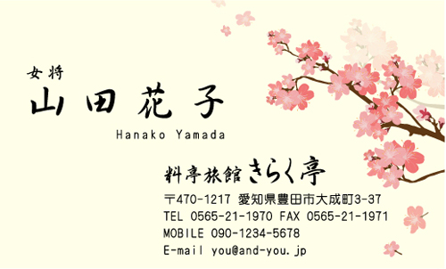 和風デザイン名刺 NI-WA-237 カテゴリ > 和風デザイン・和柄 名刺デザイン 表 ※オンマウスで拡大表示いたします。 サイズ 91mm × 55mm このデザインで注文する このデザインでFAX注文 裏面デザインについて このデザインをお気に入りに追加 この商品に対するお問い合わせ 色違いデザイン NI-WA-235NI-WA-236 簡単料金計算 用紙を選択 ハイトーン (最もスタンダードな白い用紙) マイルド (白味を少し抑えたオフホワイトの用紙) サニー (クリーム色の用紙) グレイ (緑がかった明るい灰色の用紙) 光沢紙 ※両面印刷不可 ※ラインストーン不可和紙(両面新大礼紙) (両面にレーヨン繊維が漉き込まれています) 半透明(トレーシングペーパー) ※両面印刷不可 ※ラインストーン不可半透明(NTパイル) ※両面印刷不可 ※ラインストーン不可厚紙:オフホワイト 厚紙:薄ピンク 枚数を選択 203050100150200300400500 金額をチェック 送料はこちら レビューコメント 2 件のレビュー・コメントがあります。 30代の会社員 様(閲覧者) 2019年07月29日 上品な和食屋さんなどのお店などに使えそうな名刺デザインだと思います... 続きを読む 30代の会社員 様(閲覧者) 2019年07月29日 上品な和食屋さんなどのお店などに使えそうな名刺デザインだと思います。桜の花びらを散らしたデザインはよくありがちですが、桜の木の枝を取り入れているのは珍しく、より和風らしさが際立っていると思います。 めめめ 様(閲覧者) 2018年07月02日 日本の四季に想いを馳せながら見ることのできる名刺ですよね。着付け師のお友達から桜のお名刺をいただく事がありまして、私も桜のお名刺を作成したいと思っておりました。全体的に見て、落ち着いていて年相応に感じましたので、こちらのデザインでご注文させていただきました。早くお友達にお渡ししたいです。素敵なお名刺をありがとうございました。 閉じる レビューをお書きください このデザインのレビュー(ご感想)をぜひご記入ください レビュー入力欄 レビューは不特定多数の方がご覧になりますので、 個人情報などを含まれないようにご注意ください。 投稿していただいた内容について、弊社で不適切と判断した場合には、 お断りなく非掲載とさせていただく場合がございます。 レビュー記入者の種別 閲覧者 購入者 レビュー記入者の名前(ニックネーム) 下の数字を入力: 関連デザイン penki-ay001 penki-ay002 penki-ay003 penki-ay004 penki-ay005 penki-ay006 aias003 essq006 farm-ni055 knki020 niha250 niha251