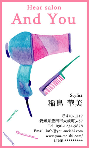 職業別名刺:スタイリスト stylist-AI-007 カテゴリ > 美容師・スタイリスト・ヘアメイク 名刺デザイン 表 ※オンマウスで拡大表示いたします。 サイズ 91mm × 55mm このデザインで注文する このデザインでFAX注文 裏面デザインについて このデザインをお気に入りに追加 この商品に対するお問い合わせ 色違いデザイン stylist-AI-005stylist-AI-006 簡単料金計算 用紙を選択 ハイトーン (最もスタンダードな白い用紙) マイルド (白味を少し抑えたオフホワイトの用紙) サニー (クリーム色の用紙) グレイ (緑がかった明るい灰色の用紙) 光沢紙 ※両面印刷不可 ※ラインストーン不可半透明(トレーシングペーパー) ※両面印刷不可 ※ラインストーン不可半透明(NTパイル) ※両面印刷不可 ※ラインストーン不可 枚数を選択 203050100150200300400500 金額をチェック 送料はこちら レビューコメント 3 件のレビュー・コメントがあります。 凜 様(閲覧者) 2024年06月02日 水彩タッチのイラストがとっても可愛らしいです♡色使いも私の好きなお... 続きを読む 凜 様(閲覧者) 2024年06月02日 水彩タッチのイラストがとっても可愛らしいです♡色使いも私の好きなお色です☆ライトブルーの外枠がアクセントになっていてひとつの絵画作品のようにも見えちゃいます。職業名刺だけに限らず、オシャレさん用の名刺としてもお勧めしたいですね。 ポメ 様(閲覧者) 2019年02月11日 すぐに職業が解るデザインは良いですね!とくに、この水彩画風のドライヤーなどのイラストが可愛く、素敵ですね。一生懸命、お客様を綺麗にしますと言う気持ちが伝わってくれそうです。 くろ 様(閲覧者) 2019年01月04日 スタイリストです。自分の仕事にあったビジネスカードを探しています。この名刺のデザインはすごく分かりやすいイラストが描かれているので、候補にしています。センスのよいカードが多々あるので迷ってしまいます…。 閉じる レビューをお書きください このデザインのレビュー(ご感想)をぜひご記入ください レビュー入力欄 レビューは不特定多数の方がご覧になりますので、 個人情報などを含まれないようにご注意ください。 投稿していただいた内容について、弊社で不適切と判断した場合には、 お断りなく非掲載とさせていただく場合がございます。 レビュー記入者の種別 閲覧者 購入者 レビュー記入者の名前(ニックネーム) 下の数字を入力: 関連デザイン penki-ay001 penki-ay002 penki-ay003 penki-ay004 penki-ay005 penki-ay006 aias007 aiki001 aiki002 aiko001 aiko013 aiko018