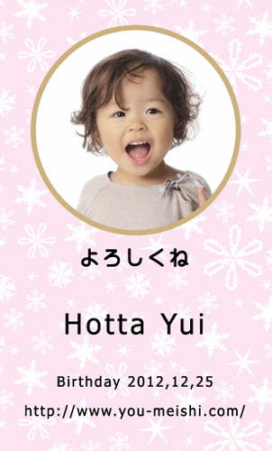 キッズ名刺 YH-KD-011 カテゴリ > キッズ・キッズモデル・子供(こども)用名刺 表 ※オンマウスで拡大表示いたします。 サイズ 91mm × 55mm このデザインで注文する このデザインでFAX注文 裏面デザインについて このデザインをお気に入りに追加 この商品に対するお問い合わせ 色違いデザイン YH-KD-010YH-KD-012 簡単料金計算 用紙を選択 ハイトーン (最もスタンダードな白い用紙) マイルド (白味を少し抑えたオフホワイトの用紙) 光沢紙 ※両面印刷不可 ※ラインストーン不可半透明(トレーシングペーパー) ※両面印刷不可 ※ラインストーン不可半透明(NTパイル) ※両面印刷不可 ※ラインストーン不可 枚数を選択 203050100150200300400500 金額をチェック 送料はこちら レビューコメント 2 件のレビュー・コメントがあります。 かきぴぃ 様(閲覧者) 2019年06月03日 少し大人っぽいデザインが良いですね。デザインもシンプルで、見やすく... 続きを読む かきぴぃ 様(閲覧者) 2019年06月03日 少し大人っぽいデザインが良いですね。デザインもシンプルで、見やすくオシャレなキッズ向きですね。雪の結晶も優しく清潔感も有り、顔写真がとても映えそう。男の子でも女の子でも使えそうですね。 テケテケ 様(閲覧者) 2017年07月06日 色を抑えた写真がとってもかわいいですね。淡い丸のフレームが金色で型どってあり、豊かで高価な印象です。若々しい印象を醸し出す水色が使われており、幼い少女の第一印象にとっても合っていると思います。また、その水色の中に花模様が入っていて、女の子と感じます。文字も丸文字でかわいく記入されていて、ソフトで柔らかく伝わります。 閉じる レビューをお書きください このデザインのレビュー(ご感想)をぜひご記入ください レビュー入力欄 レビューは不特定多数の方がご覧になりますので、 個人情報などを含まれないようにご注意ください。 投稿していただいた内容について、弊社で不適切と判断した場合には、 お断りなく非掲載とさせていただく場合がございます。 レビュー記入者の種別 閲覧者 購入者 レビュー記入者の名前(ニックネーム) 下の数字を入力: 関連デザイン penki-ay001 penki-ay002 penki-ay003 penki-ay004 penki-ay005 penki-ay006 smco071 ykcu015 aice017 aice018 aice019 aige001