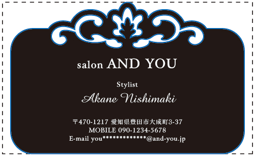 なんかこんな感じの、エレガントな雰囲気の看板ってありますよね?そんなイメージがします。 それを名刺で作れちゃうなんて・・・すごいなぁ! これを渡したらワンランク上の大人だと思われそう。 | |