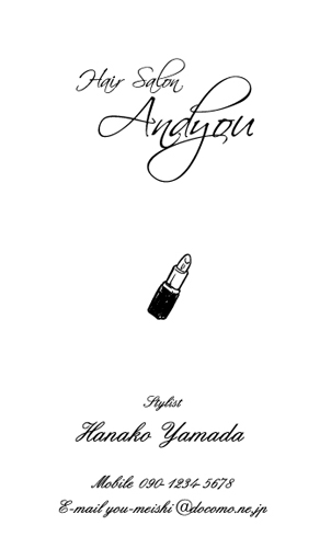 シンプルに、白と黒しか使ってないのにしっかりオシャレ! 口紅のイラストに、めちゃめちゃオシャレなフォント、惹かれる要素しかない! オシャレなコスメを販売する人とか美容師さんとかピッタリ! | |