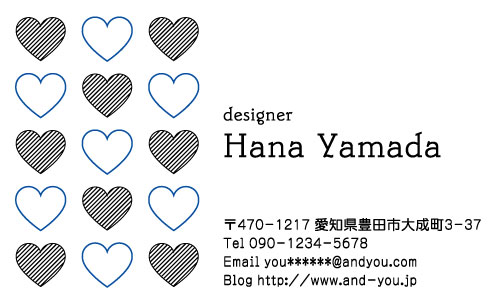 真四角の名刺にハートの型抜き、めちゃめちゃ可愛いです! 一見ハートに見えませんでした。 名刺自体とてもシンプルなのに、名刺の大きさや色が特徴的でハートが抜かれているのもまた特徴的。 普通でないものが好きな私にピッタリな名刺だと思いました。 | |