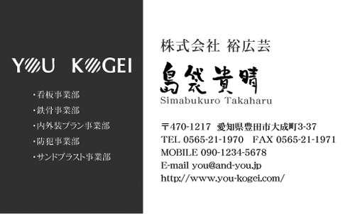 ブラックとホワイトで色分けしてあり、左右で雰囲気も違うところがいいですね。 筆文字の良さも引き立っている感じがします。 モノトーンでまとめられていて、かっこいいです。 | |