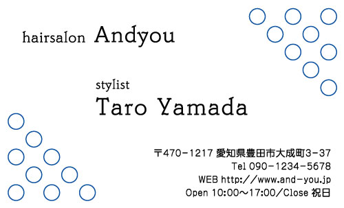ブルーが白地にとても合ったシンプルながら三角形の柄が派手過ぎず高級感の感じるデザインで素敵です。 男女どちら向きの店舗でも使いやすいと思います。 余白も多くあるので文字も見本以上に入れられそうです。 | |