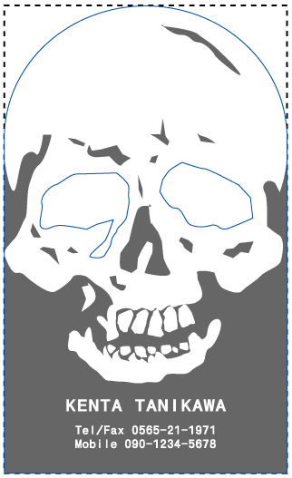 おお! カッコイイ! ドクロをモチーフにした名刺って、なんだか憧れますね~切り抜きってことは、目の部分に穴が開くのかな?ものすごく面白いじゃないですか! こんなにかっこいい名刺、もっと早く知りたかったなぁ | |